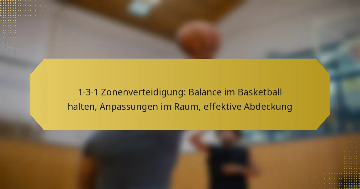 Die 1-3-1-Zonenverteidigung ist eine strategische Basketballformation, die einen Spieler vorne, drei in der Mitte und einen hinten platziert. Sie ist darauf ausgelegt, eine ausgewogene und effektive defensive Struktur zu schaffen. Dieser Ansatz betont die Aufrechterhaltung des Gleichgewichts durch strategische Positionierung und Kommunikation, wodurch die Verteidiger sich an offensive Spielzüge anpassen können, während sie das Spielfeld effektiv abdecken. Eine angemessene Abstände sind entscheidend, um Lücken zu schließen und eine kohärente Abdeckung zu gewährleisten, sodass die Spieler dynamisch auf die Bewegungen des gegnerischen Teams reagieren können.